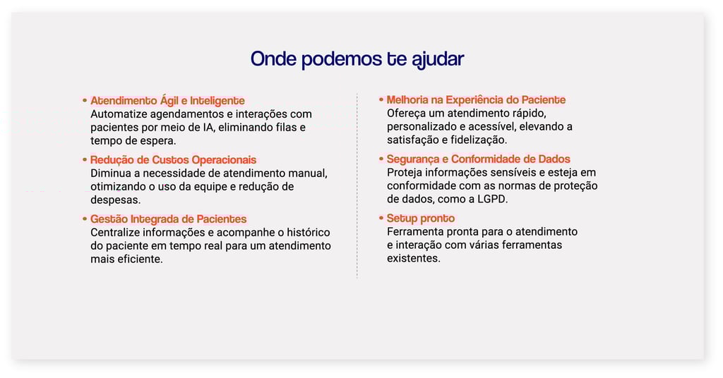 Automatize agendamentos e interações com pacientes por meio de IA, eliminando filas e tempo de espera.